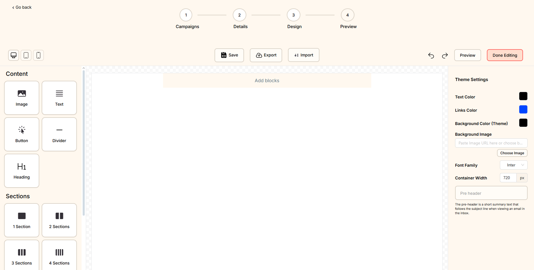The Drag-and-Drop Editor allows you to design beautiful emails without coding.