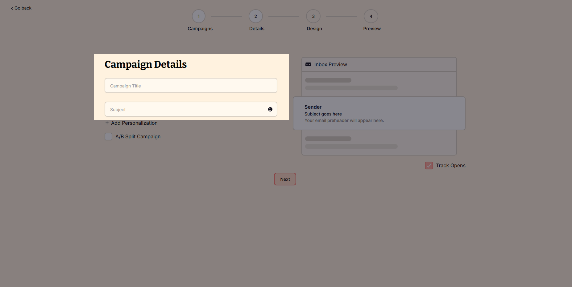 - Campaign title – For internal use only. It will not show up to your subscribers.