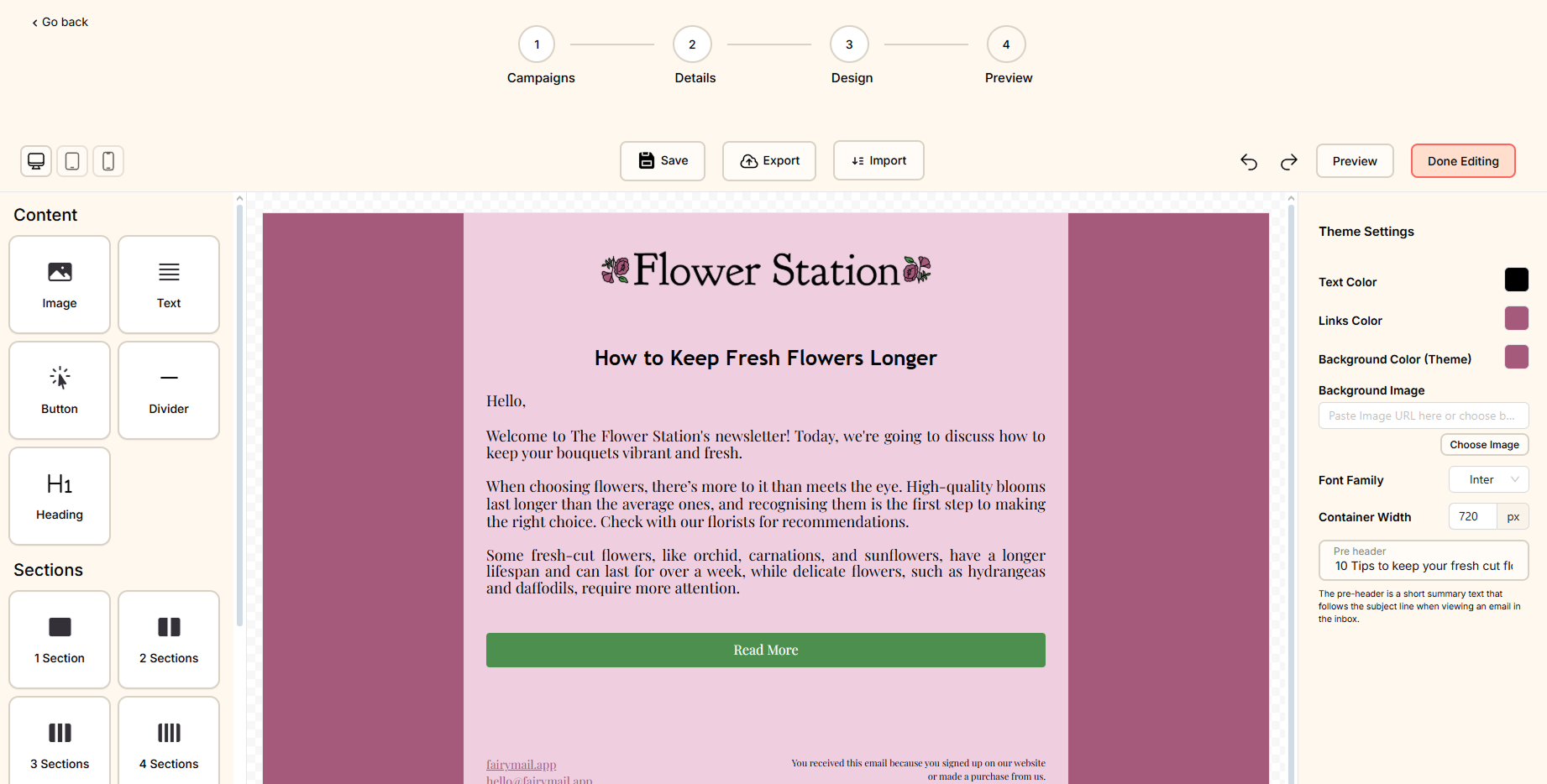Once you finished editing your email, click on the Done Editing button.